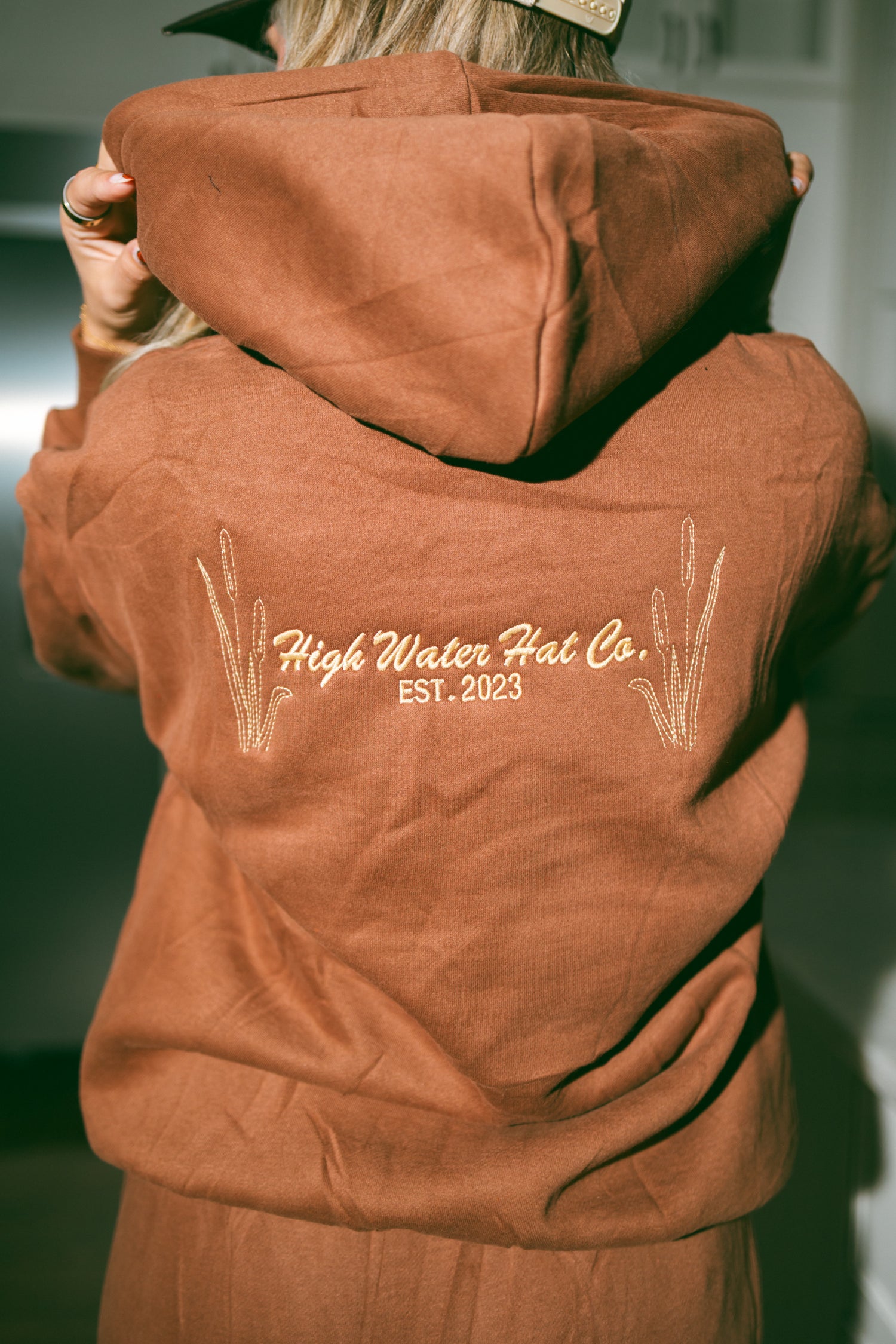 The Bevo Hoodie gives off strong southern charm with its rich brown color and warm, broken-in feel. It’s cozy yet durable perfect for ranch days, tailgates, or kicking back after a long one. Finished with the High Water Hat Co. logo, it’s a true everyday essential that brings that rugged Texas style wherever you go.