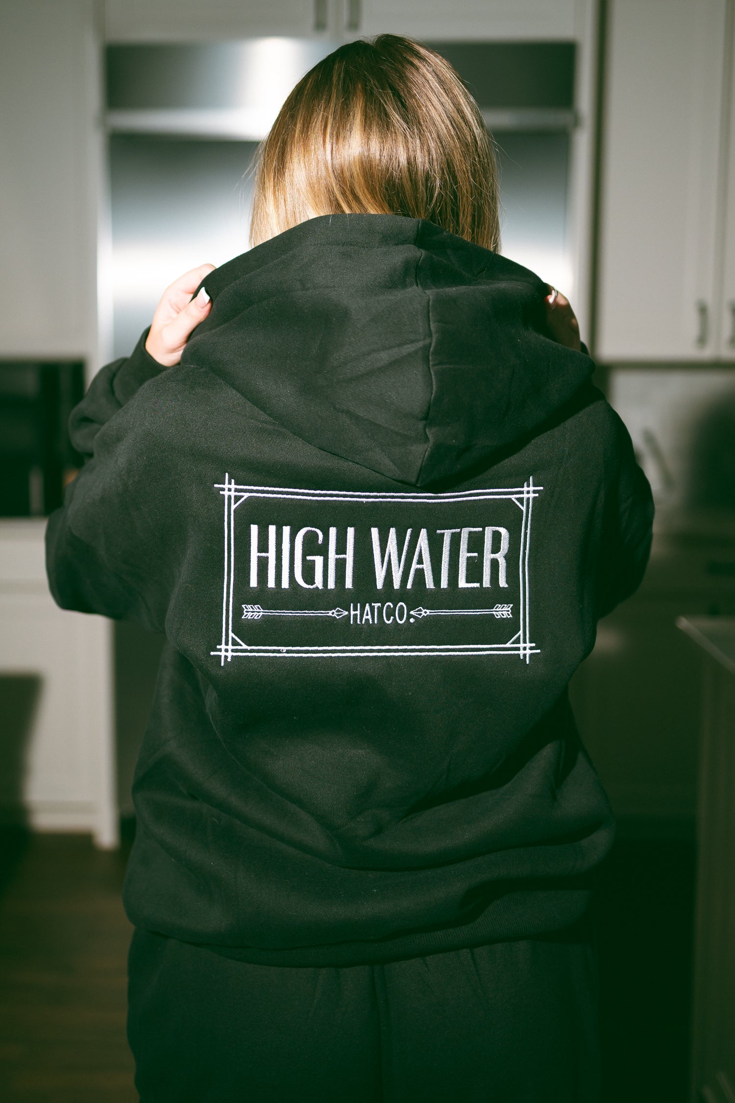 The Rocket Hoodie brings a sleek, modern edge to the High Water lineup. Its jet-black color and minimal design make it versatile and bold, while the soft interior keeps it comfortable all day long. With the High Water Hat Co. logo front and center, it’s a go-to piece for anyone who likes to keep it simple, sharp, and ready to roll.