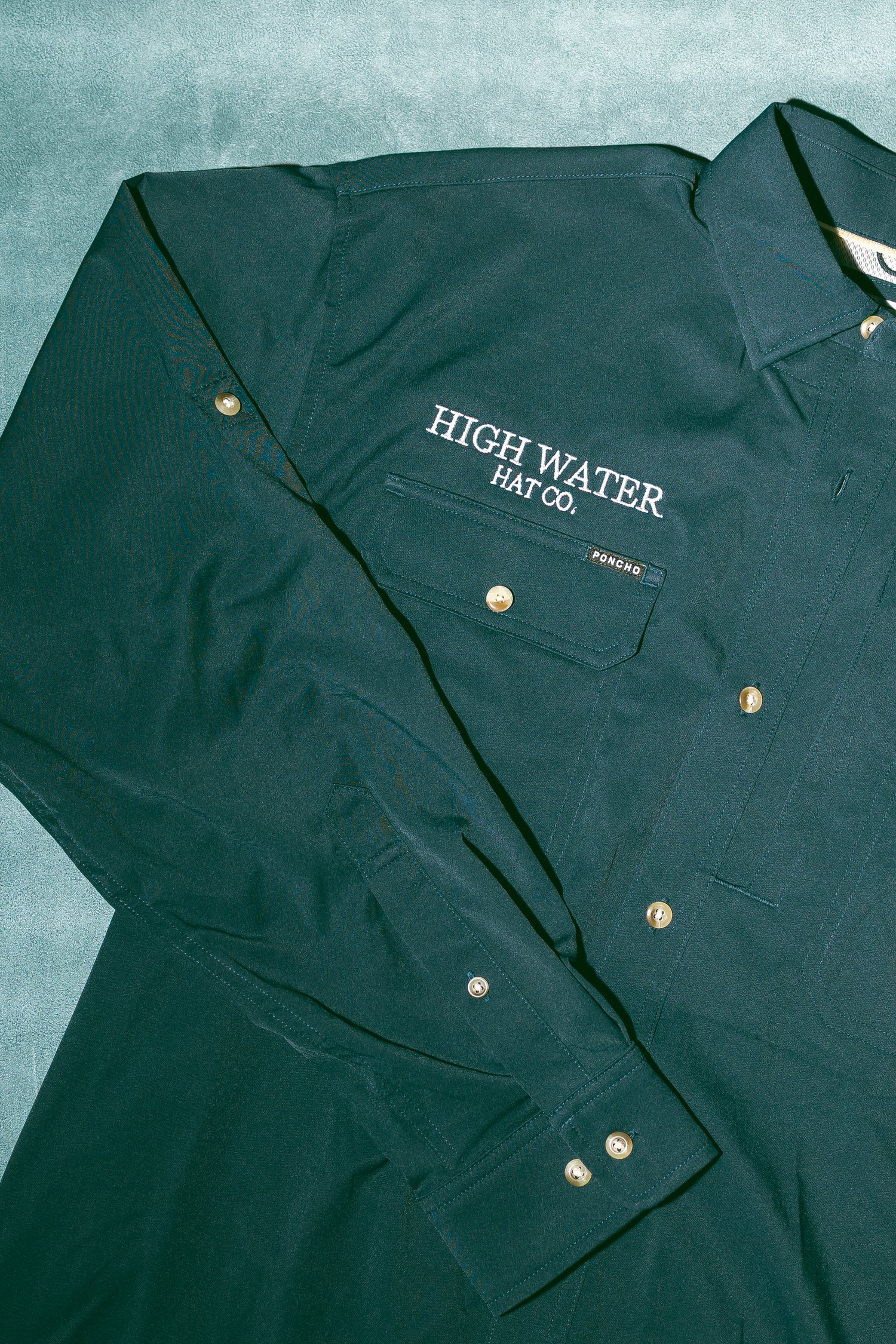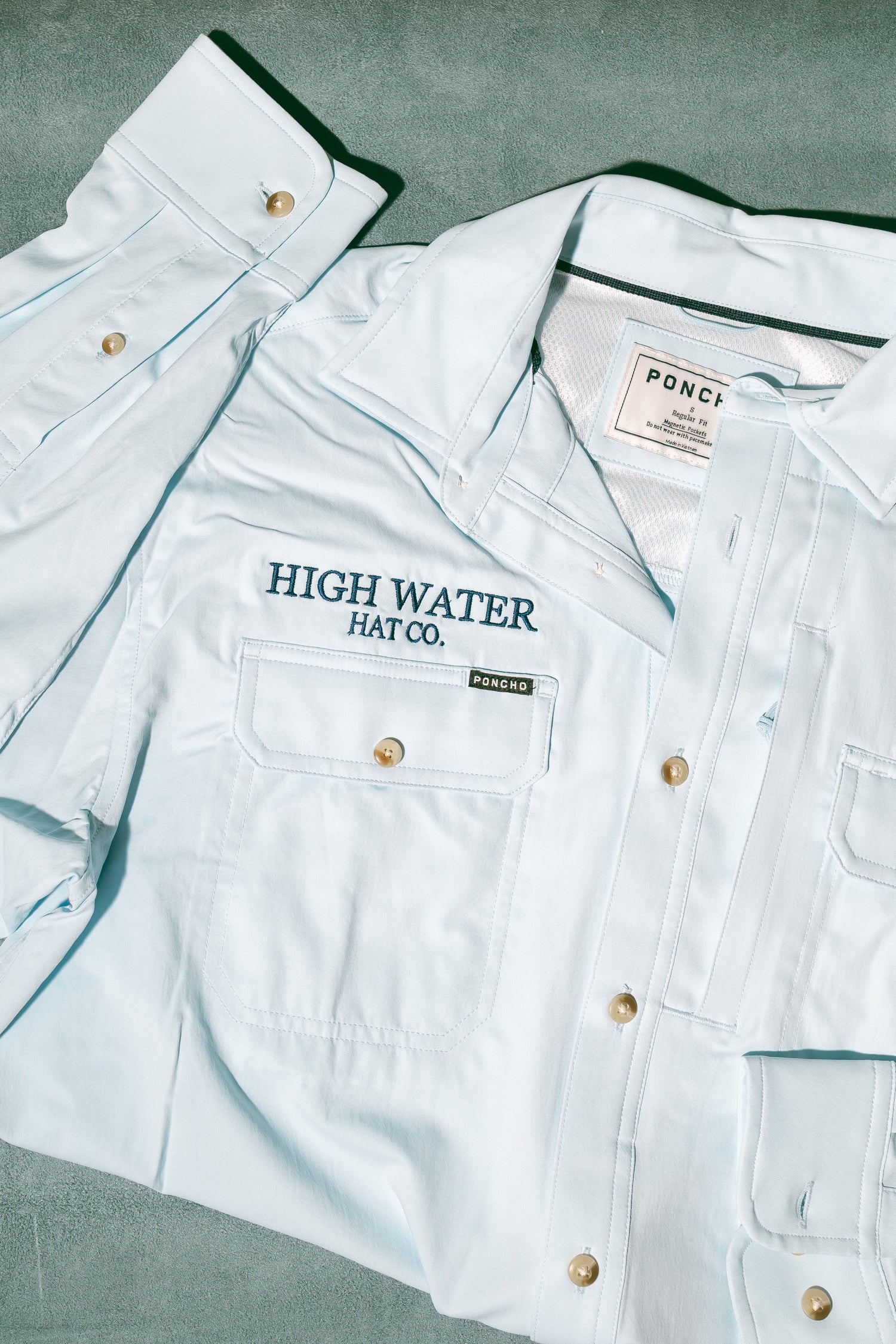 These long-sleeve Poncho shirts are made for comfort, performance, and style perfect for long days on the water or in the field. They feature lightweight, quick-dry material that keeps you cool, plus button-down pockets and the High Water Hat Co. logo embroidered on the chest for a clean, timeless look. Built tough yet breathable, these shirts are ideal for fishing, hunting, or everyday wear the perfect mix of function and southern style.