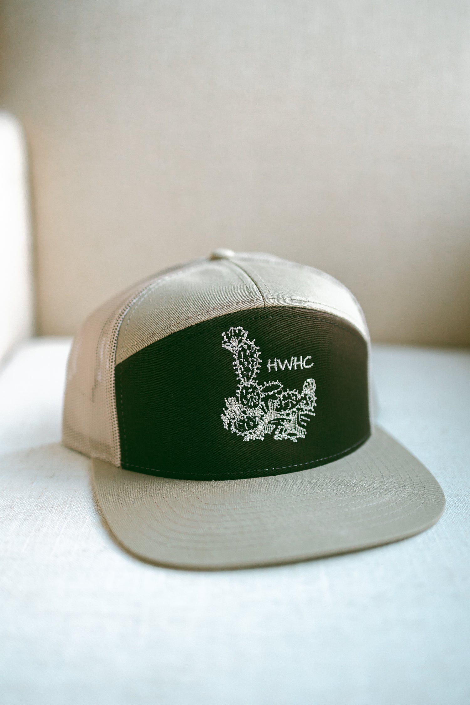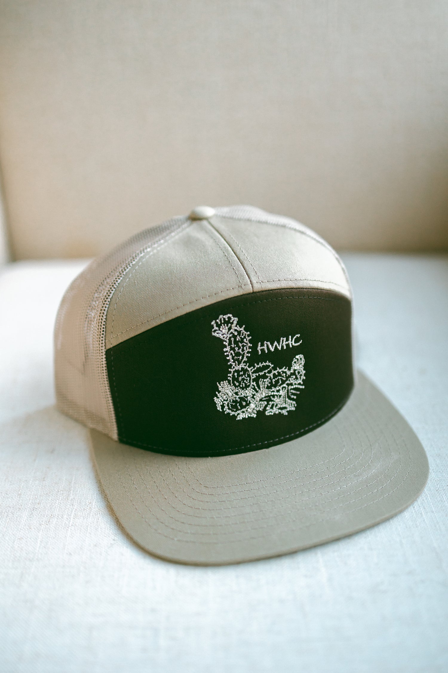 Rooted in the rugged spirit of the South, where desert grit meets everyday style. Featuring a bold embroidered cactus design and the HWHC logo, this hat pays homage to the drylands, dusty trails, and golden-hour sunsets that define the High Water lifestyle. The tan and olive tones keep it versatile, while the structured fit and breathable mesh back make it ready for whatever the day brings, whether you’re out on the ranch, at the lake, or on the road.